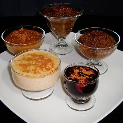 conocidísima mazamorra morada con todas sus frutas, la mazamorra de chocolate, la mazamorra de