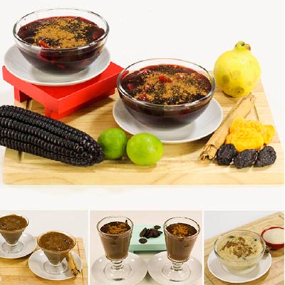 peruanos: Mazamorra morada, Arroz con leche, Champús limeño, Arroz Zambito, Mazamorra de