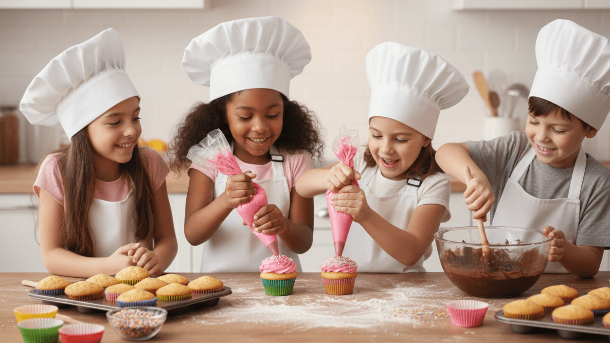 En nuestros cursos de repostería para niños y adolescentes de 8 a 15 años la diversión y el aprendizaje van de la mano. Desde galletas y helados, hasta tortas, pizzas, empanadas, donas y más los pequeños descubrirán el mágico mundo de la cocina con recetas deliciosas y fáciles de hacer.
